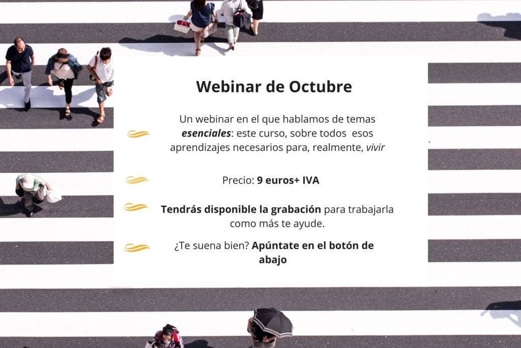Con todo lo que te he dicho, ya sabrás si el webinar te interesa. Es muy práctico, y te da pistas concretas para que lo concretes en tu vida y te sigas implicando en vivir.
